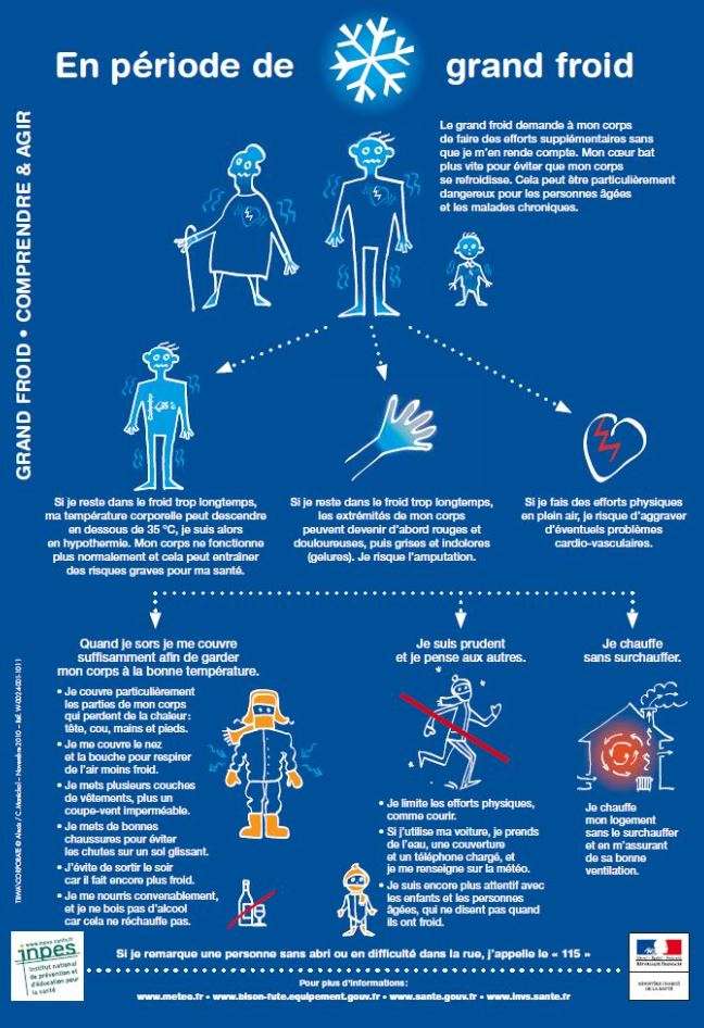 Comme pour les périodes de fortes chaleurs, en cas de températures extrêmement négatives, il s’agit de protéger les personnes fragilisées ou isolées, notamment les personnes âgées, en situation de handicap, ou souffrant de maladies cardiovasculaires, respiratoires, endocriniennes...