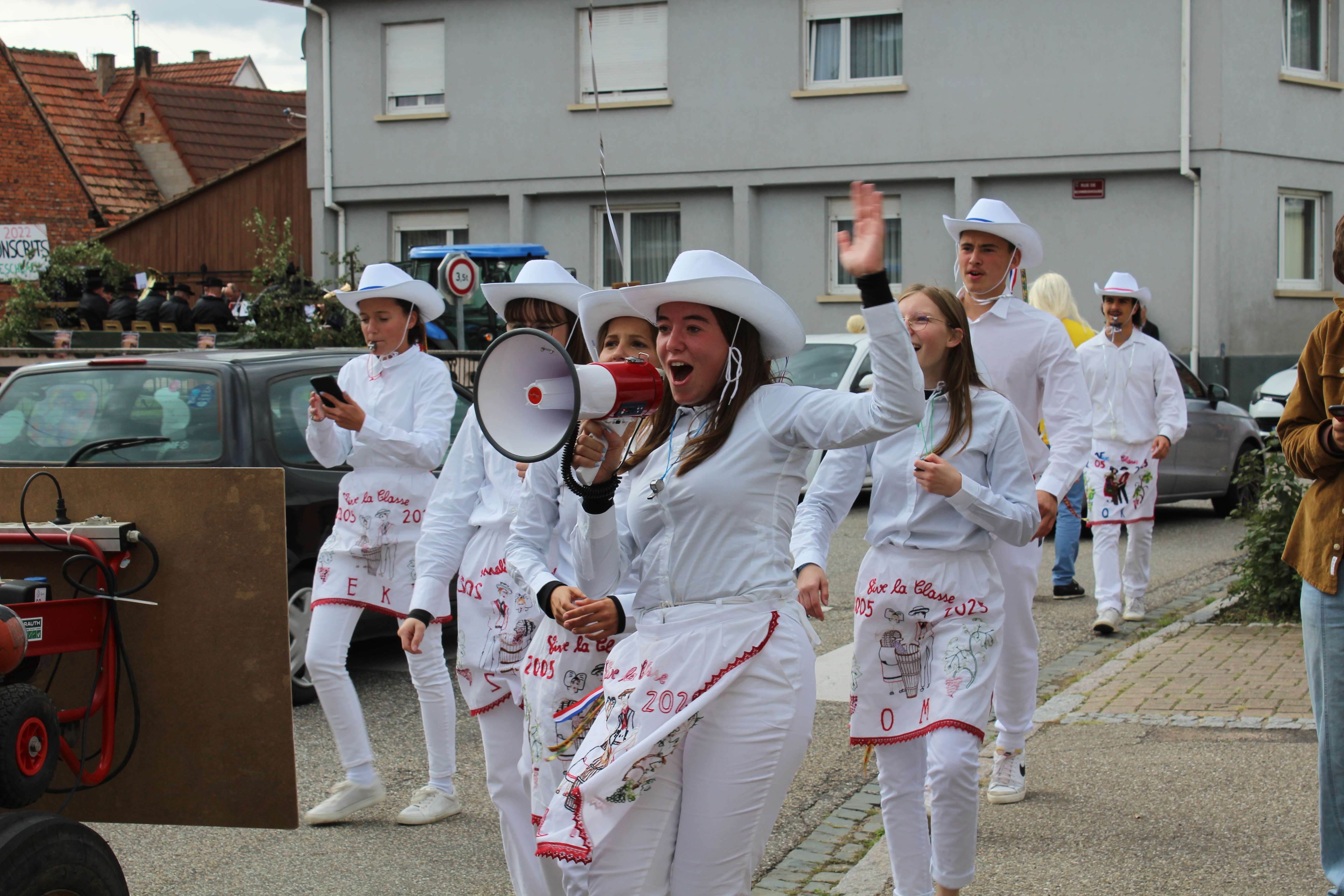 Longtemps réservée aux garçons, les filles participent peu à peu à la tradition. Lors du messti, les conscrits défilent dans le village lors du messti, revêtus de leurs plus beaux atours et offrant une gorgée de vin blanc aux habitants et aux passants.
